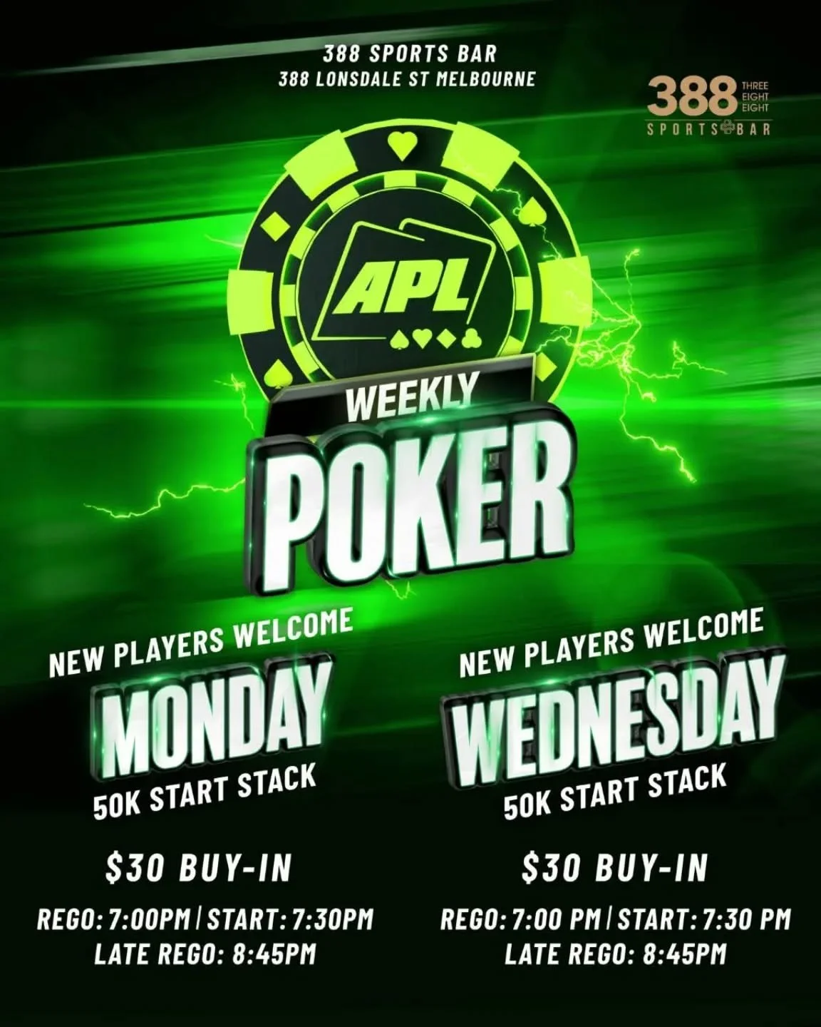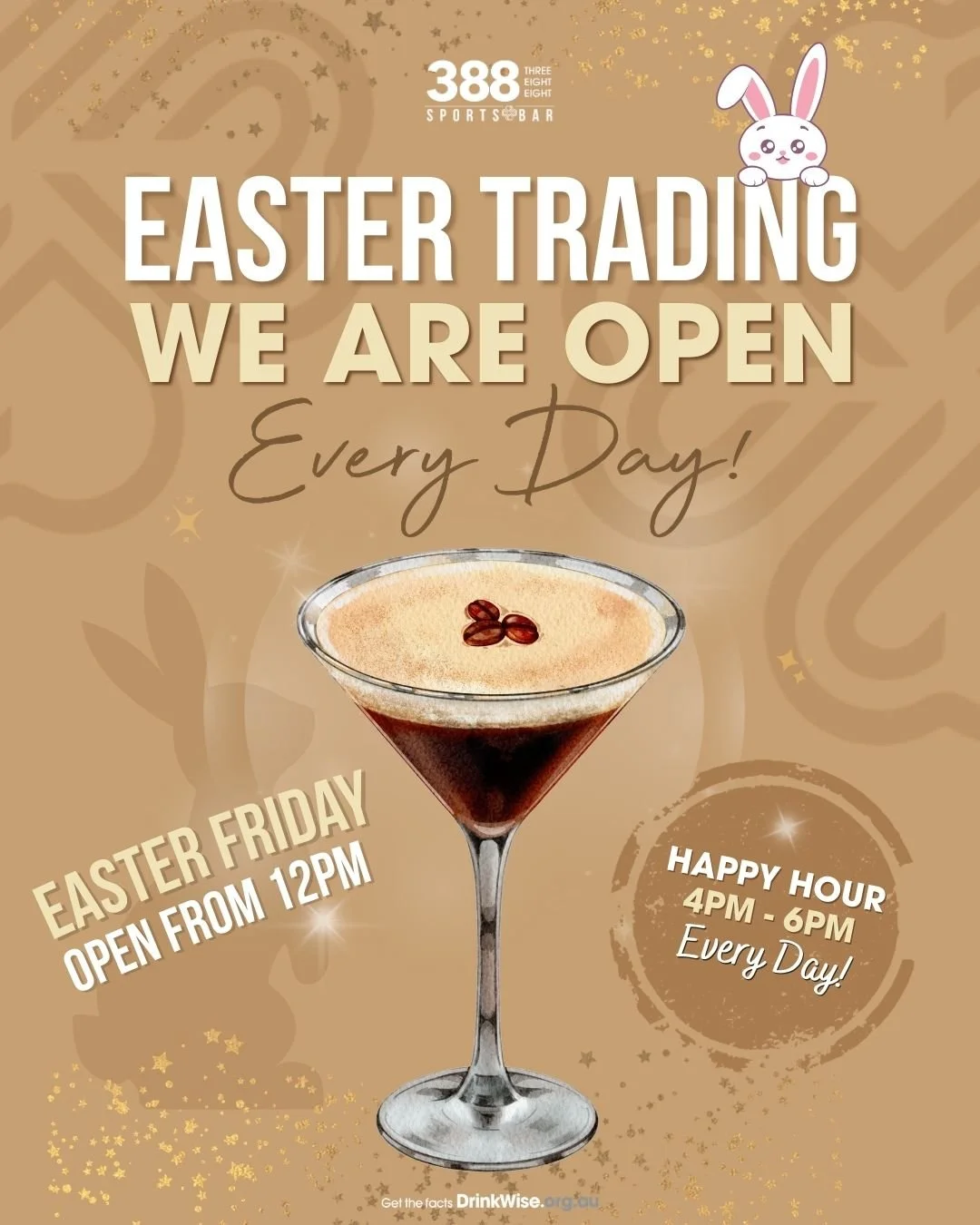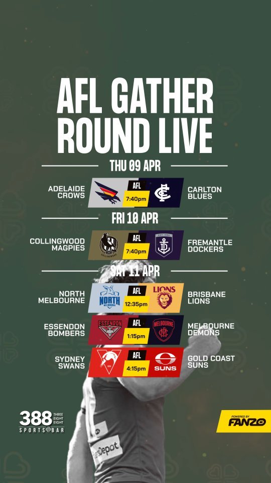 Join us for non-stop LIVE Sports on the many big screens. Happy Hour $7 Schooners & $4 House Wines from 4-6pm every day, $13 Cocktails available all day, plus a variety of delicious hot food available! Feel the excitement as you cheer on your team, enjoy a cold drink and immerse yourself in the vibrant atmosphere of 388 Sports Bar.